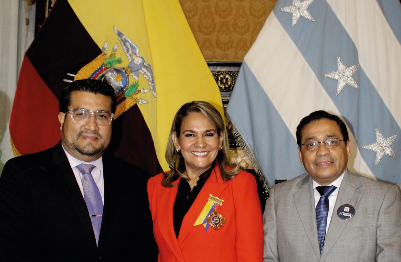 El Mgtr. Alex Salvatierra Espinoza, vicerrector administrativo, y el PhD. William Quimí Delgado, director de admisiones, de la ULVR asistieron al evento de reconocimiento a la artista plástica guayaquileña, Hellen Constante Palacios ...
